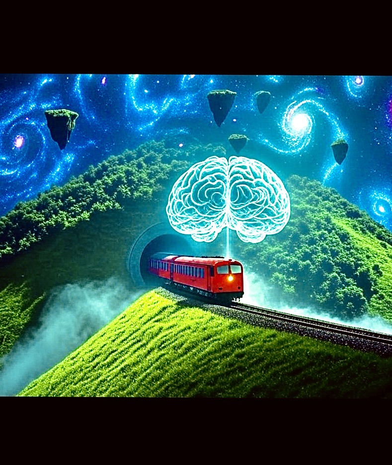 “Onward!” Booms Captain Cool, “This Train is Now Entering The Hillside Tunnel. Please Pay Attention. Once On The Inside, All Aboard will See How The Hill climbs ever Higher, runs ever-the-more Deep, and is seen as The Mountain of Illumination when viewed with Inner Trained Wisdom. You can keep that token, it’ll get you somewhere later on.” The Captain winks.